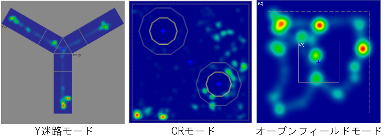 Y迷路、オブジェクトレコグニション、オープンフィールド、明暗ケージの各モードに対応しています。(今後も追加されます)
